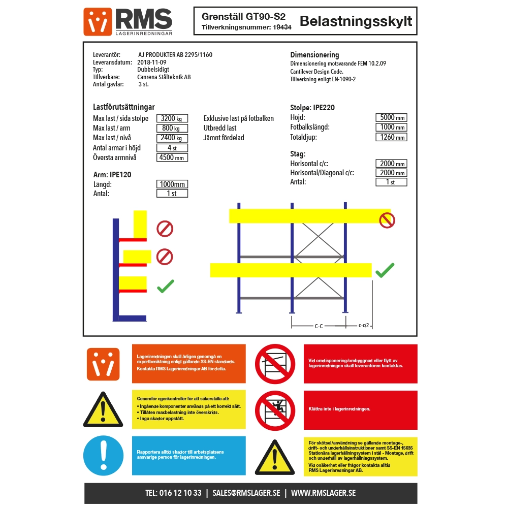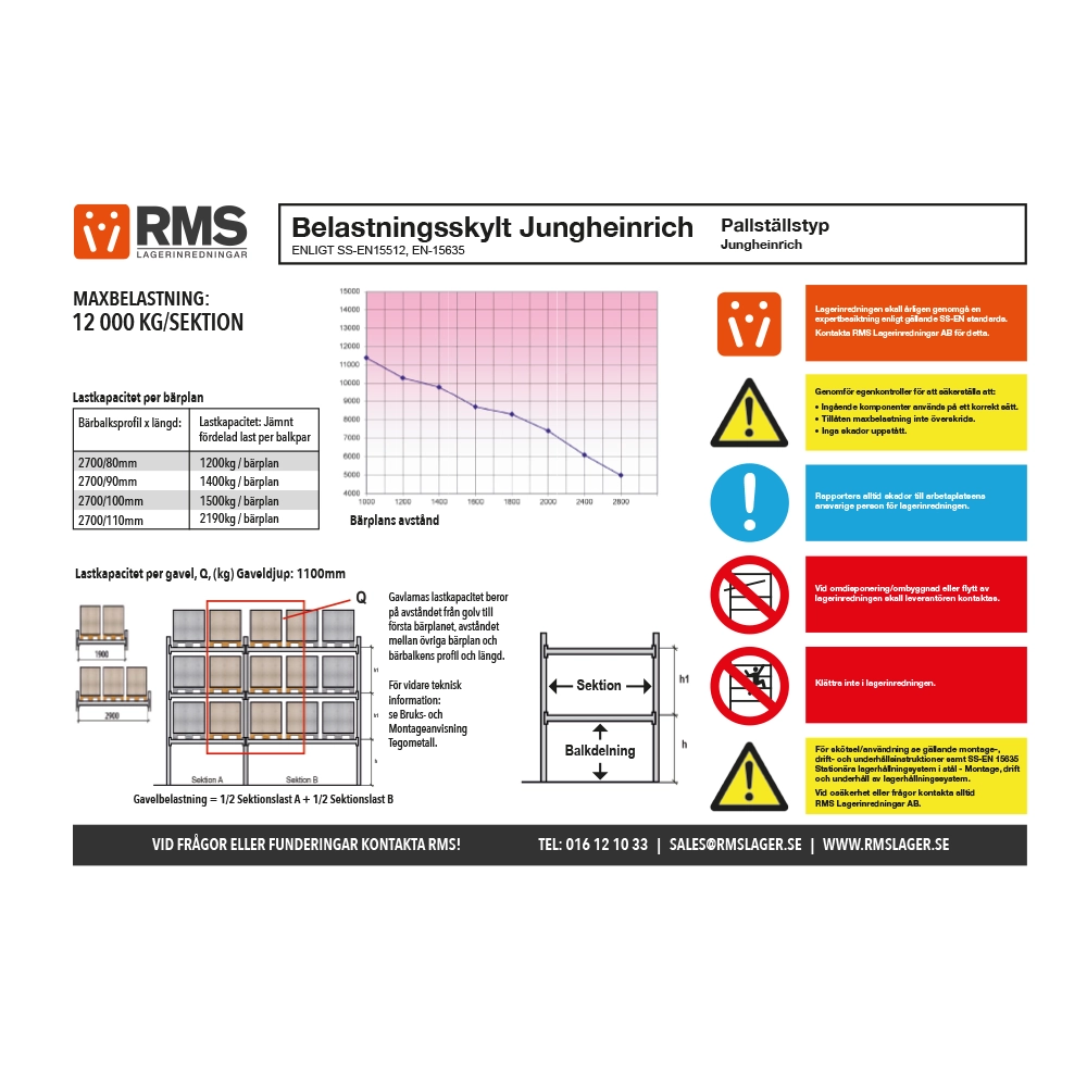 Vi anpassar innehållet efter ditt ställage och ditt fabrikat. Oavsett märke ser vi till att belastningsskylten visar rätt information för just din lösning.